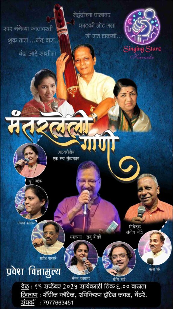 कार्यक्रमाची संकल्पना सिंगिंग स्टार्स स्टुडिओचे संचालक राजू बोराडे यांची असून, निवेदन संतोष भोंडे करनार आहेत. यामध्ये माधुरी नाईक, समिधा कार्लेकर, सतीश पानसरे, स्नेहल दूधसागर, संदीप साठे आणि महेश पारे हे गायक आपल्या गायकीने रसिकांना मंत्रमुग्ध करणार आहेत. संगीताच्या या अविस्मरणीय संध्याकाळसाठी रसिकांनी मोठ्या संख्येने उपस्थित रहावे, असे आवाहन आयोजकांनी केले आहे.