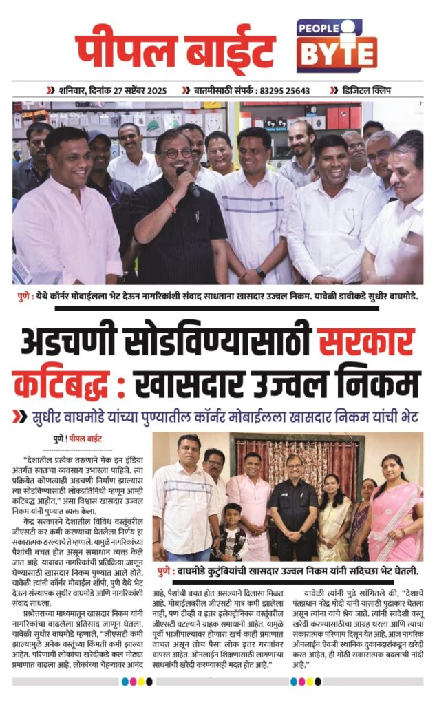 केंद्र सरकारने देशातील विविध वस्तूंवरील जीएसटी कर कमी करण्याचा निर्णय घेतला. त्याचा सकारात्मक परिणाम झाला असून पैशांची बचत होत असल्याने नागरिकांकडून समाधान व्यक्त केले जात आहे. या बाबत पुण्यातील नागरिकांची प्रतिक्रिया जाणून घेण्यासाठी खासदार उज्वल निकम दाखल झाले होते. या वेळी त्यांनी सुधीर वाघमोडे यांच्या कॉर्नर मोबाईल शॉपीला भेट देऊन नागरिकांशी संवाद साधला.
