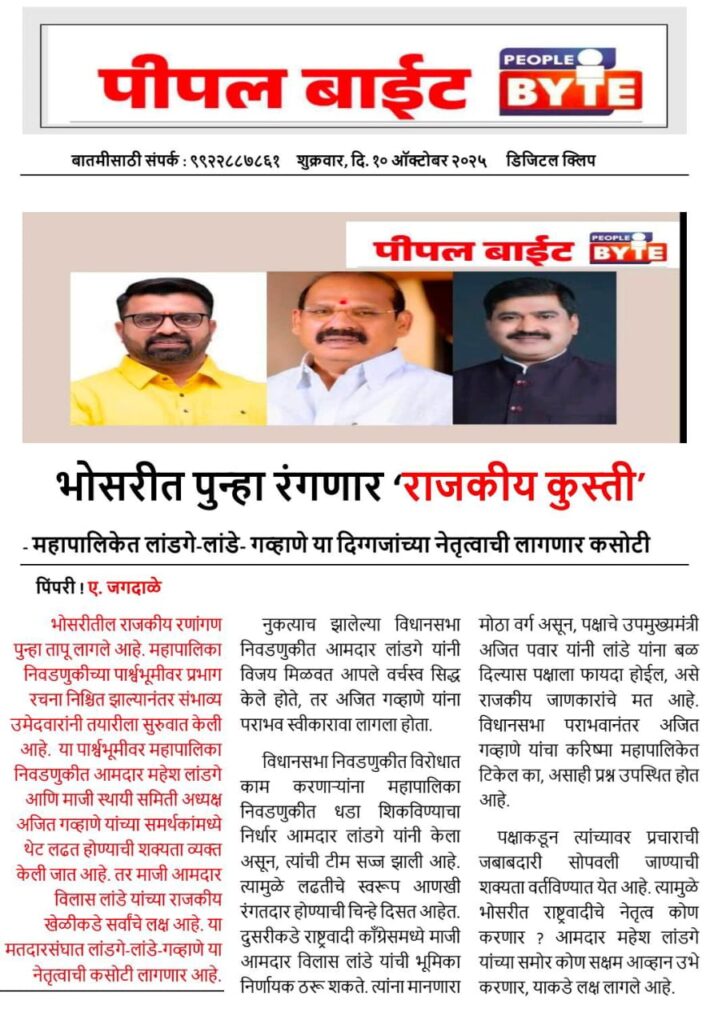 भोसरीतील राजकीय रणांगण पुन्हा तापू लागले आहे. महापालिका निवडणुकीच्या पार्श्वभूमीवर प्रभाग रचना निश्चित झाल्यानंतर संभाव्य उमेदवारांनी तयारीला सुरुवात केली आहे. नुकत्याच झालेल्या विधानसभा निवडणुकीत आमदार महेश लांडगे यांनी विजय मिळवत आपले वर्चस्व सिद्ध केले होते, तर माजी स्थायी समिती अध्यक्ष अजित गव्हाणे यांना पराभव स्वीकारावा लागला होता. आता या पार्श्वभूमीवर महापालिका निवडणुकीत लांडगे आणि गव्हाणे यांच्यात थेट लढत होण्याची शक्यता व्यक्त केली जात आहे. तर माजी आमदार विलास लांडे यांच्या राजकीय खेळीकडे सर्वांचे लक्ष आहे. या मतदारसंघात लांडगे-लांडे-गव्हाणे या नेतृत्वाची कसोटी लागणार आहे.